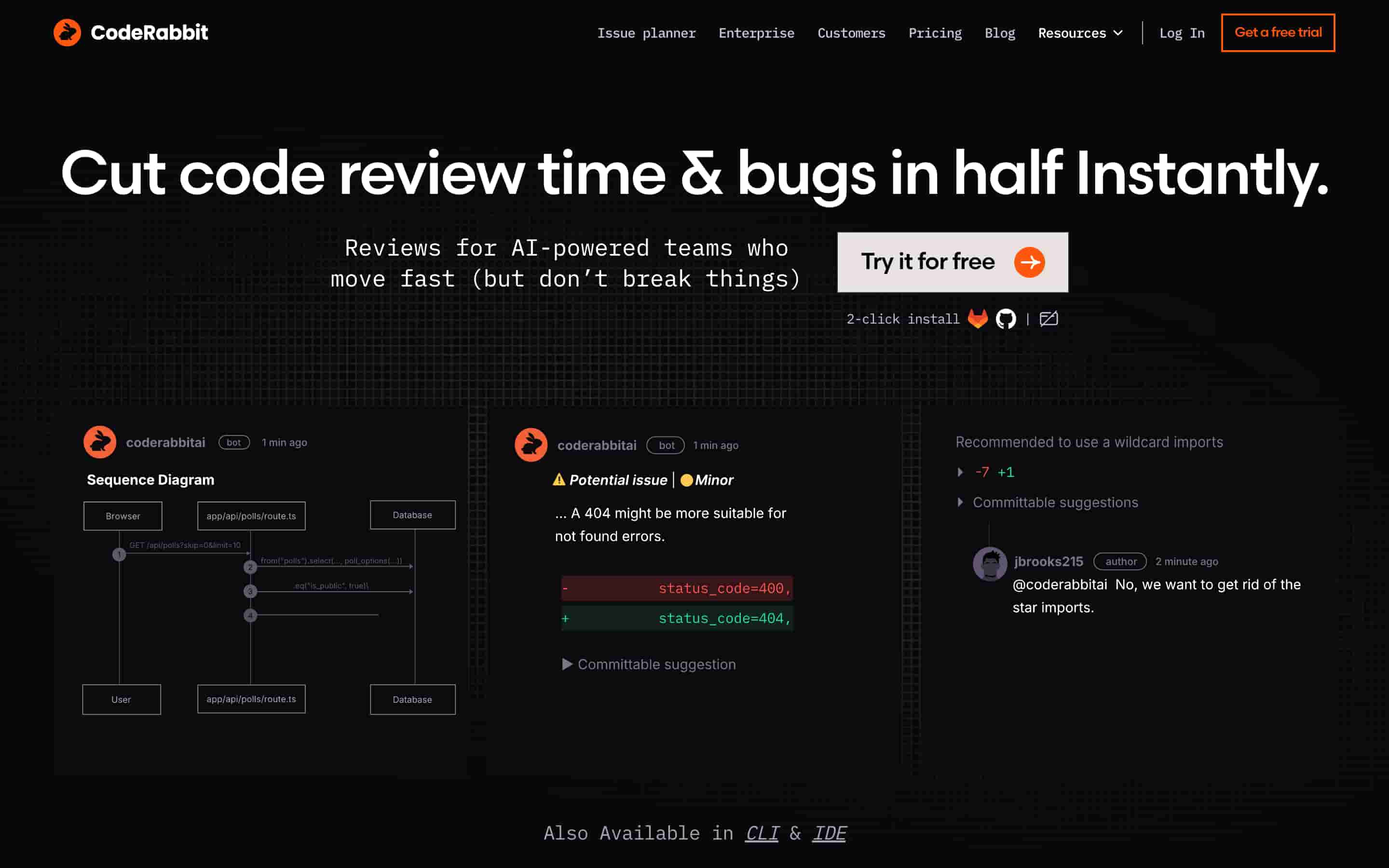 CodeRabbit — это AI-сервис, который помогает разработчикам писать, улучшать и анализировать код с помощью искусственного интеллекта. Он предназначен для ускорения работы с программным обеспечением и повышения качества кода.